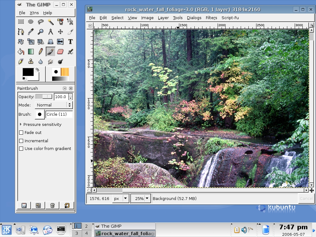 The discussion to this point has been concerned with getting pictures into the computer from an external source. Some mention has been made of manipulating images. Kooka, XSane, digiKam and F-Spot all can change the imported images to some degree, but to do more in-depth editing, it is necessary to use a dedicated image program. For this task, we look at The GIMP and CinePaint. The GIMP (GNU Image Manipulation Program) has been around since 1995 and is probably the most widely known open-source image program. CinePaint started as a fork of The GIMP in 1998, known as Film GIMP (also Hollywood GIMP and GIMP16) and acquired its current name in March 2003.