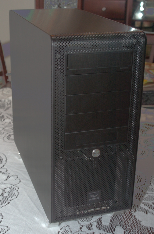 Many spots on the outside of the case are made of a metallic mesh, allowing heat to pass through easily. You would think that such a setup would make the machine noisy, but in fact, this is a fairly quiet system, mostly because the fans are so large. The bigger the fan, the quieter it tends to be.