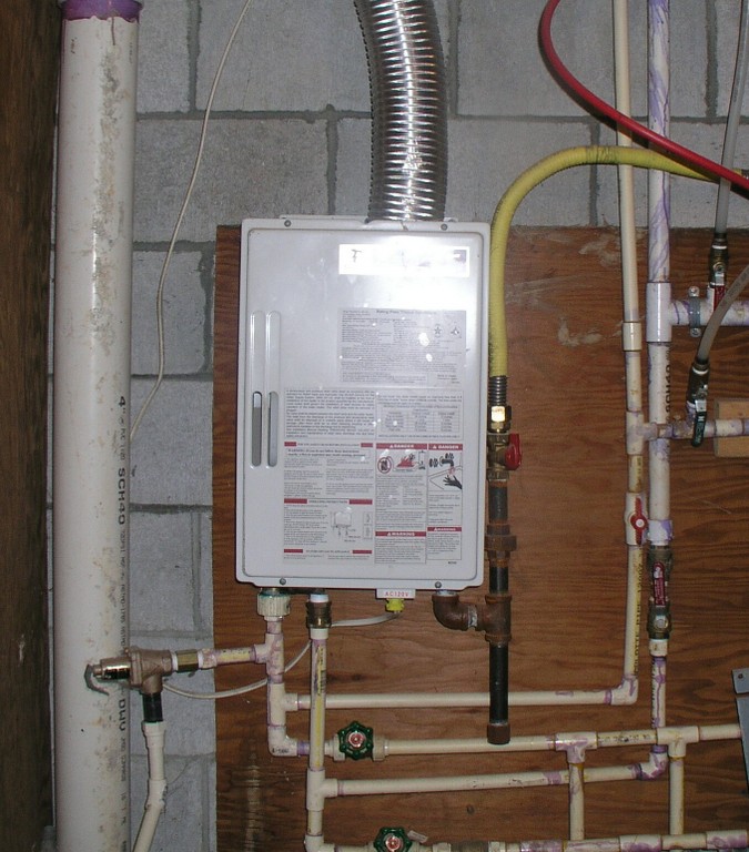 The first system component is a heat source, and there is a wide variety of possible heating sources. I am using a 144,000 BTU wall-mounted instantaneous natural gas hot water heater with a 95% efficiency rating. One of the features of these units is that they are regulated and controlled internally. Simply drawing water triggers the electronic ignition. The unit itself controls its output to match demand. My unit has some ability to manipulate the preset water temperature as well as monitor its performance. Regardless of whether it is conventionally controlled or controlled by a home automation system, my water heater itself requires no external controls.