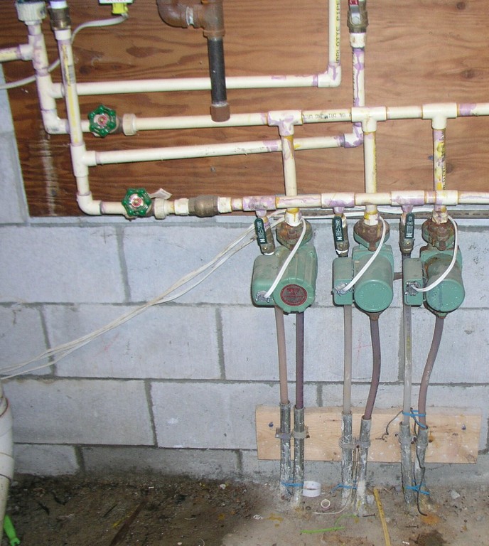 Another part of the system is a closed-loop water distribution system. Hot water needs to get from the heat source to the heat sink and back. In my home, this is more PEX tubing, as well as manually constructed manifolds.
