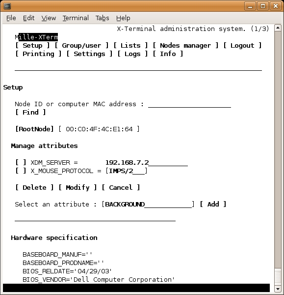 The MILLE Project is funded by Canadian public agencies and school districts in the province of Quebec. MILLE means “Free Software Infrastructure Model for Education” and is targeted at educational institutions. It is composed of four subprojects: a portal (based on uportal), an open-source middleware stack, a CD with free software for Windows/Mac and, finally, MILLE-XTERM (the object of the present article).