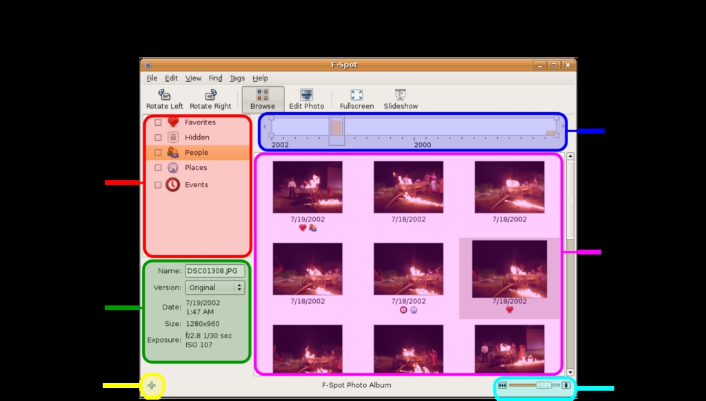 We also had no way to find, say, all of the photos of a particular child easily. Other than knowing when the photos were copied off of the camera, the photo collection was an unorganized mess. Thankfully, F-Spot came to our rescue in a big way.