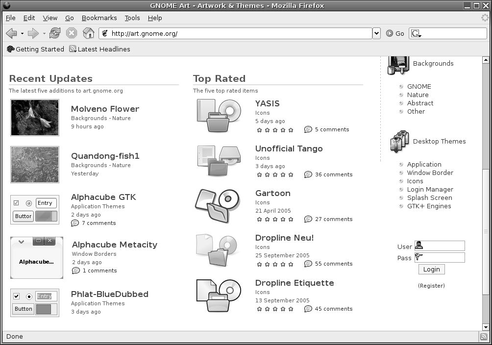 Visiting the GNOME Art site (art.gnome.org), shown in Figure 3, gives you access to just about every theme ever created for GNOME. In fact, the site also contains wallpaper selections, icons, and much more besides. All of the offerings are free to use, and most of the packages are created by enthusiasts.