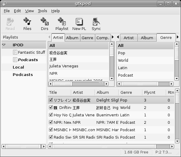 Playing Tracks on Your iPod with gtkpod