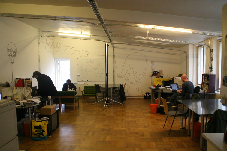 We walk down the street to a curbside where one of the Indienet vans is parked. Next to it Jakob's partner Preben Conrad is rolling a smoke before heading down into the basement of an apartment building, where he and another guy are wiring up the place. Preben is the lead technical guy for the company and its chief installer. In the basement, the guys show me the empty rack where the routers, switches and other gear will go, and the metal wiring channels they've been assembling and are now attaching to the ceiling. Next to the channels, several generations of telephone wiring and cable TV co-ax are tacked to floor joists and disappear through holes drilled in the floors above. The difference between installations is notable. Indienet's is built to service and to improve when the need comes. The building, typical for the neighborhood, is seven floors high and about 100 years old. The basements make it easy to run wiring to appropriate points below the stacks of flats above. And, the co-op nature of most apartments makes it easy to deal with one entity.