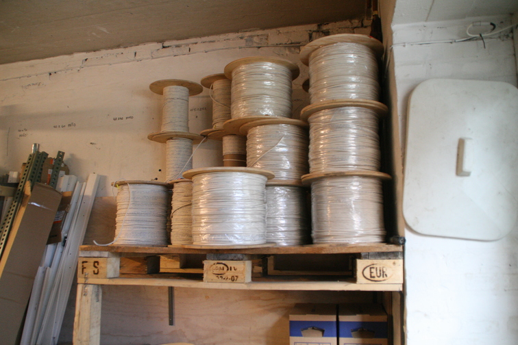 Down at street level, Jakob shows us Indienet's garage workshop, where wooden spools of green and orange fiber optic cabling sit on floors and shelves. Piled near the door are many smaller spools of CAT6 wiring. Wire channels, conduit, connecting hardware, drills, saws and other tools are neatly arranged in the space behind a collection of foosball tables in shipping boxes. Nearest the door are two pallets of Applied Telecom switches. “Those are the best”, Jakob says—though he saves his highest admiration for Soekris, the Santa Cruz-based maker of small workhorse embedded Linux boxes. “They're simple and extremely reliable.” (I just noticed, while surfing around the Soekris site, that the company's founder and CEO is Soren Kristensen. I'm guessing he's Danish. Coincidence?)
