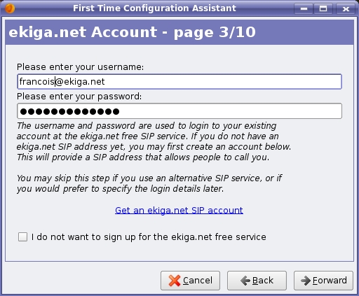 Figure 1. If you don't have a SIP address yet, Ekiga makes it easy. Click the link provided, and you'll be set up in no time.