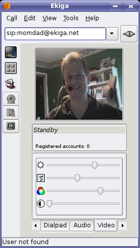 Notice the button bar to the left in Figure 3. You can turn video or audio on and off, and you can bring up a chat window for text message exchange. In fact, Ekiga will work under a number of different configurations. You can run video only, audio only, text only or any combination of the three modes. If you have a camera and your friends don't, that's okay too, because they'll still be able to see you. Of course, it can be a little disconcerting to know that somebody out there can see you, but you can't see them.