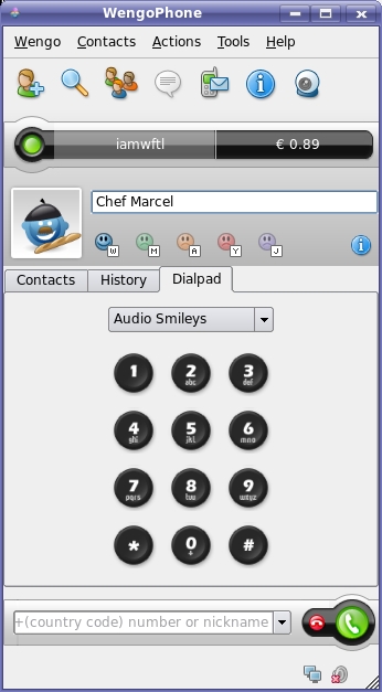 SMS, like calling regular phones of other non-Wengo users, does cost credits, which you can buy directly from your WengoPhone, but the price is very reasonable. In fact, calling the rates inexpensive seems unfair—downright cheap sounds more appropriate. As I write this, a call from my PC in Ontario, Canada, to England is .008 cents (Euro) per minute. Yes, those are two zeros to the right of the decimal point.