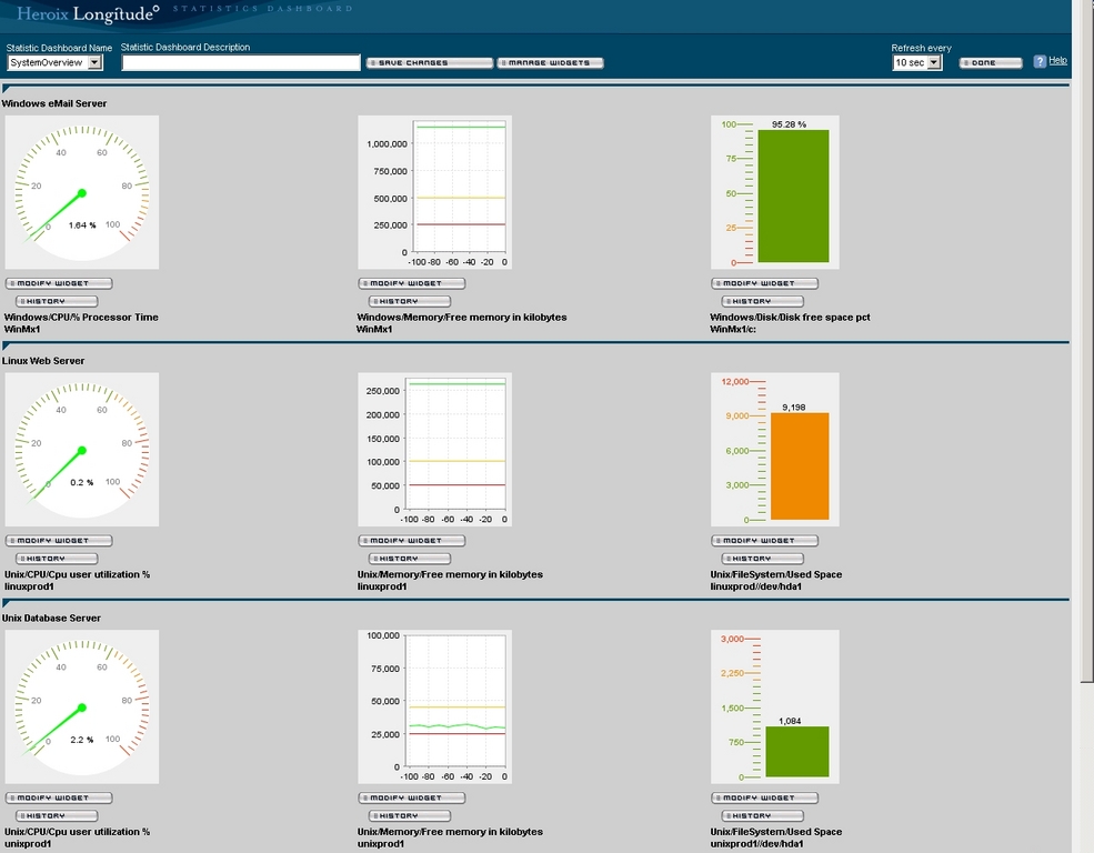 Heroix just announced version 4 of Longitude, the firm's agentless performance monitoring and reporting software. The application is intended to monitor an enterprise's entire IT infrastructure, including OS, Web, database, J2EE, messaging, infrastructure, and user and business metrics, all out of the box and without agent software on monitored computers. New features in version 4 are a new centralized event monitor; a customizable, real-time statistics dashboard; expanded monitoring coverage to any SNMP-based device via a graphical studio; an archived report portal; and consolidation of Windows Event logs. Platforms monitored are Red Hat, SUSE Linux, Solaris, HP-UX, AIX and Windows. A 14-day free trial is available at Heroix's Web site.