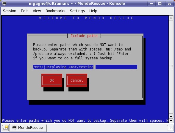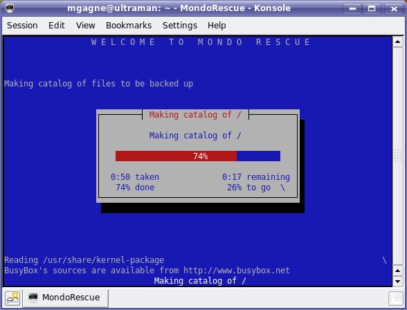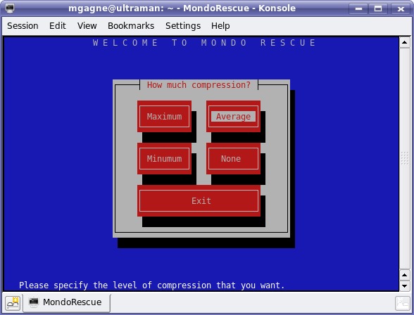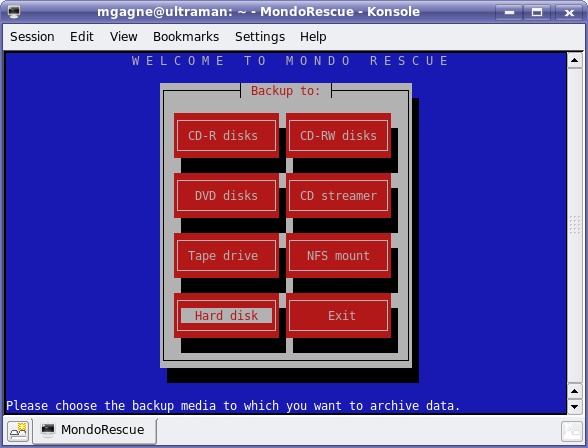 As excellent as the wine might be (and it is), the real star of tonight's menu is a powerful backup and system recovery program called Mondo Rescue. The spirit of Mondo Rescue resides in a scenario no one wants to envision, a catastrophic system failure. I'm not talking about losing your e-mail folder (although I would consider this a catastrophe as well). Mondo Rescue is concerned with “the hard disk is gone, the machine has exploded, and we need to start from scratch” kind of catastrophe. Or, as in François' case, security enhancements gone terribly wrong. Mondo Rescue works with a variety of backup media, and it can create bootable backups that let you restore a mirror image of your system prior to the disaster.