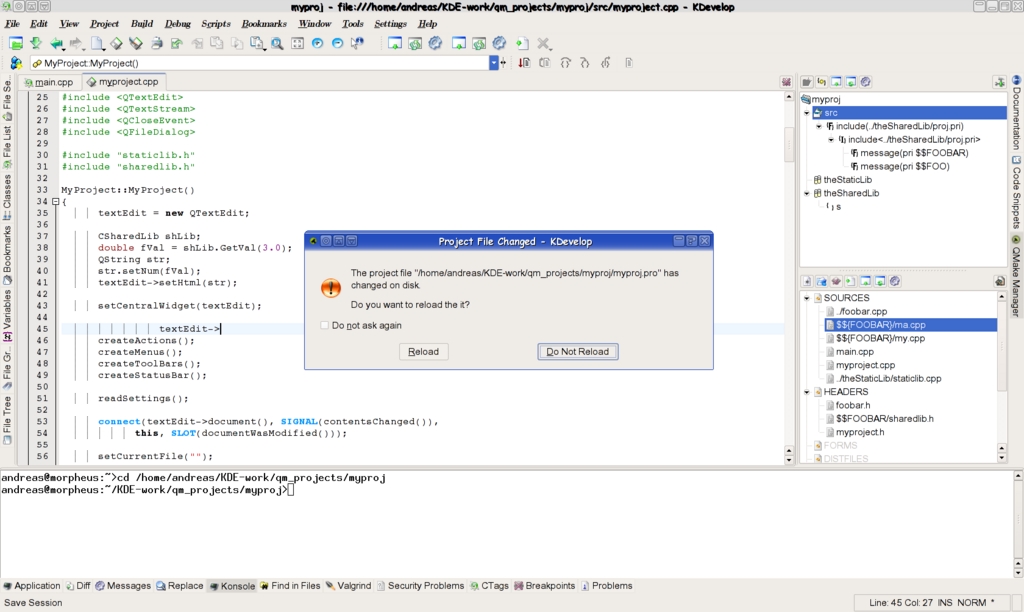 The ambitious KDevelopment Team has released version 3.4 of KDevelop, a powerful, language-independent, user-friendly integrated development environment—that's not just for programming KDE apps. Version 3.4 is the first new release in more than a year, closing more than 500 bugs and adding several new features. New features include improved Qt 4 support, new debugging capabilities, an enhanced default user interface layout, improvements for C++, and Ruby and PHP support. Official KDevelop packages are available for Kubuntu and OpenSUSE; unofficial builds also are available for other distros. One of our fellow Linux media outlets recently called KDevelop one of the top “killer apps” on the Linux platform.