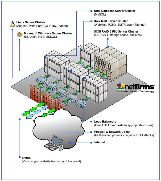 Although many Web hosting companies let you choose whether to host your Web site on Linux or Windows, Netfirms says it's the first to unite the two platforms under the umbrella of a single account. With its Business and Enterprise lines of hosting accounts, Netfirms has Windows-based applications executed natively on a Windows Server 2003 grid and Linux-based applications natively on a Linux server grid. “The two platforms are unified through proprietary clustered technology”, says Netfirms, “allowing customers to manage both transparently through a single account”. The Netfirms multiplatform server technology offers Windows-based functionality via the Microsoft Hosting Partner Program, including ASP.NET, Classic ASP and Microsoft SQL Server. On the Linux side, the full LAMP stack (Linux, Apache, MySQL and PHP) is available. The two lines encompass a wide range of hosting options depending on the client's needs.