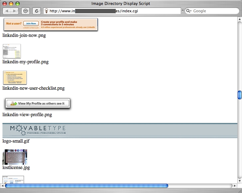 This works pretty well, displaying the images (and their names) for those files that are recognized as images, and just displaying a hypertext reference to the other files in the directory without erroneously indicating they're images.