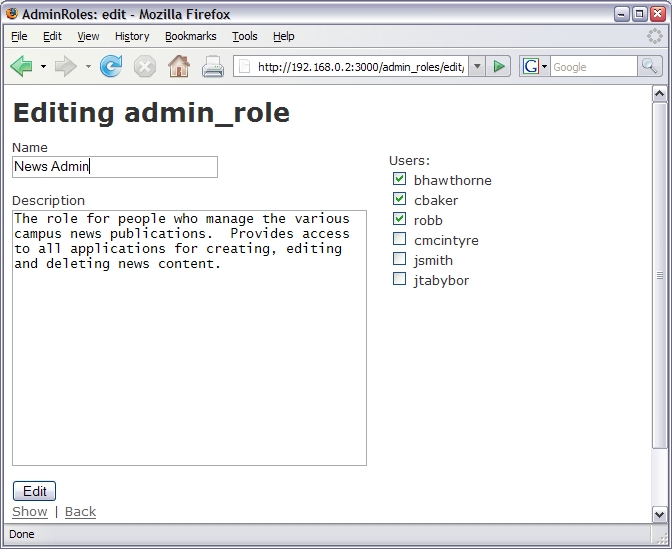 With these changes, RoR could work with the data correctly and maintain all the proper relationships. In order actually to display and edit the join information, a bit more work was required in the view and controller classes (see Resources). When finished, I had nice screens, such as the one shown in Figure 4.