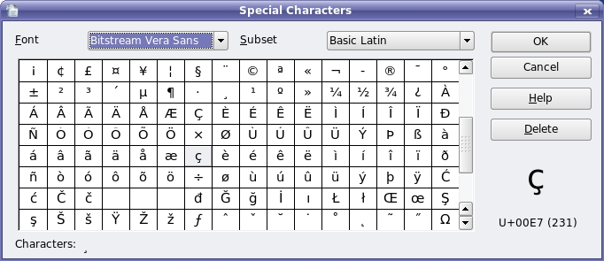If, like me, you spend a lot of time working with OpenOffice.org's word processor, Writer, the solution is fairly simple. Click Insert on the menu bar and select Special Characters from the drop-down menu. A window labeled Special Characters appears (Figure 1).