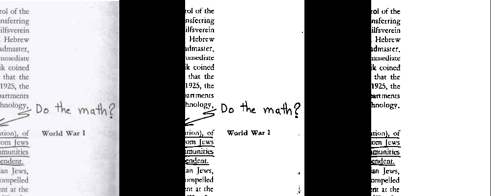 Next, I decided to try some torture tests to see how well Tesseract would do under more adverse conditions. I have used Adobe Acrobat to do OCR on scanned documents, and it requires 150 DPI. It manages to fix things like varying lighting (as we did in GIMP earlier) and linear distortion (for example, due to book bindings pulling the edge of the paper away from the scanner). It also handled skewed pages where the page was not aligned well on the scanner bed.
