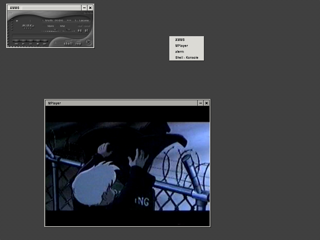 Another interesting note: Karmen seems to be quite a keyboard-driven window manager. For instance, to tell a window to stay on top of others, click the titlebar with the Shift key held down. Shift-clicking again disables the stay-on-top property of the window. A welcome addition to minimalist window managers, pressing the familiar old Alt-Tab cycles between windows. In fact, most basic GUI functions can be performed via the keyboard, generally by using a combination of Alt and another key.