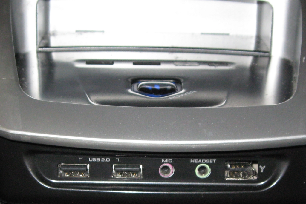 Figure 3. Under the lip below the power switch are duplicate USB ports, an IEEE 1394 port and audio ports.