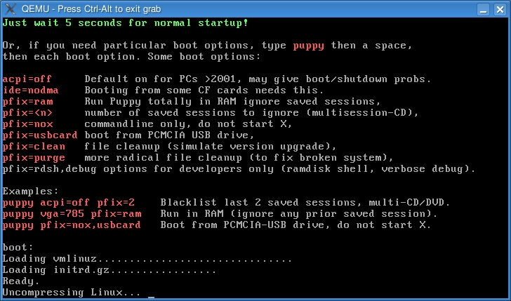 qemu -cdrom ../isos/puppy-2.16.1-seamonkey-fulldrivers.iso \ -hda ./puppy216.img -m 256 -boot d