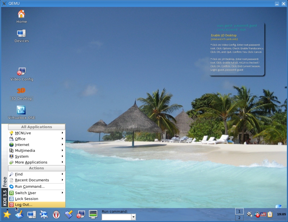 From here, you simply follow the steps for a Puppy Linux installation (or those of whatever distribution you are installing). Before I show the result, I'd like to share one more parameter with you—the -std-vga parameter. This tells QEMU to simulate a standard VGA card with Bochs extensions. You also can use the -localtime parameter to tell QEMU to run your session using the local machine time, as opposed to the default UTC. Remember the kernel acceleration? Try using -kernel-kqemu. This is only a small sample. There are network parameters, USB parameters, file-sharing parameters (SMB), devices parameters and more. I'm covering only the basics here, so make sure you check out the man page for the qemu command. Remember also that my settings for this example imply a very small footprint distribution. To run something slightly larger, such as MCNLive (a great live distribution based on Mandriva), I would create a larger disk image (see Figure 2 for a shot of MCNLive in action).
