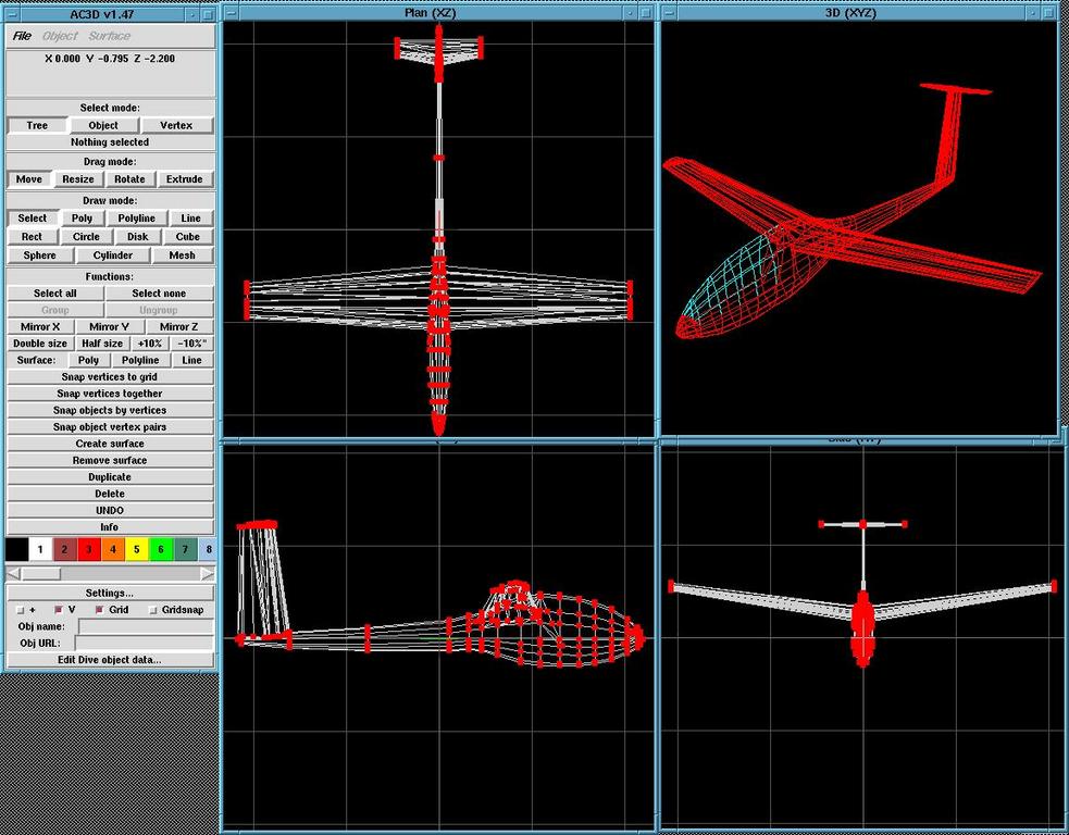 Figure 1. AC3D Screen with Imported DXF Model for a Sailplane