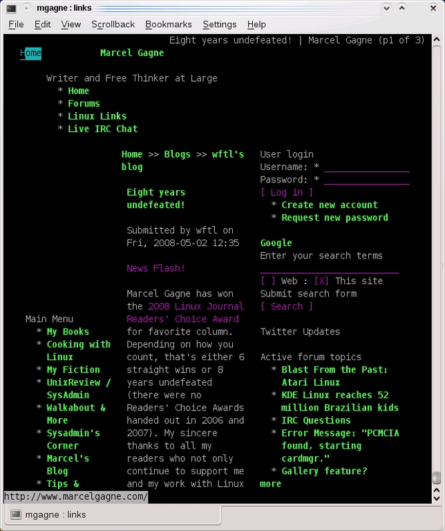 Figure 1. Links is a perennial favorite for text-only Web browsing. When you can't get to a graphical desktop, nothing beats Links.