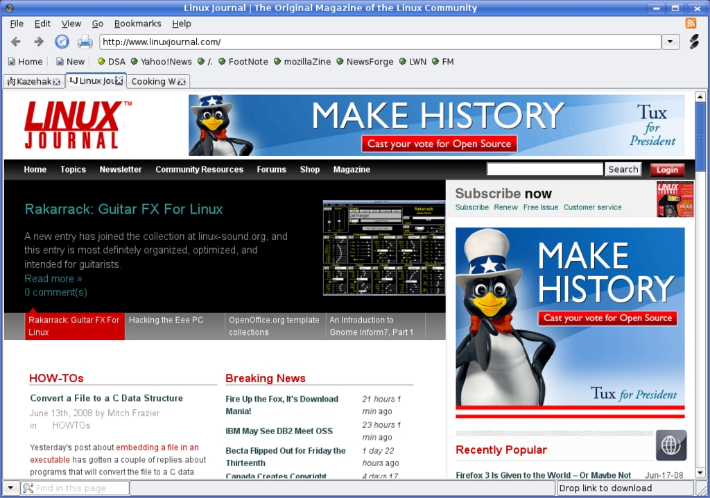 The final item on our menu is Hidetaka Iwai's Kazehakase, a graphical browser that uses the Mozilla Gecko rendering engine to display Web pages. As such, it doesn't lack for much when it comes to showing off Web sites as you expect to see them. Kazehakase, which means “Wind Doctor” is named after a short story by the Japanese author Sakaguchi Ango. This is a great little program that features tabbed browsing, customizable mouse gestures and keyboard shortcuts, RSS bookmarks and more (Figure 6).