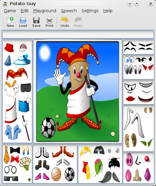 You'll have to forgive him, mes amis, he is an excellent waiter, but his mind occasionally works in very strange ways. Having accused him of looking like Mr Potato Head, I'm reminded of a great Linux game called Potato Guy, also known as KTuberling. KTuberling, written by Eric Bischoff and others, is part of KDE's kdegames package, and as such, it is easily installed from your distribution's repositories. This is a computerized version of the potato-head game where you plug various plastic eyes, ears, noses and hats in to a plastic potato to create a funny-looking potato person (Figure 1). The official Mr Potato Head is, of course, the famous store-bought version of this game, sold by Hasbro. I must confess, mes amis, that I am old enough to remember when the potato wasn't included with the game. You used a real potato. But, I digress.