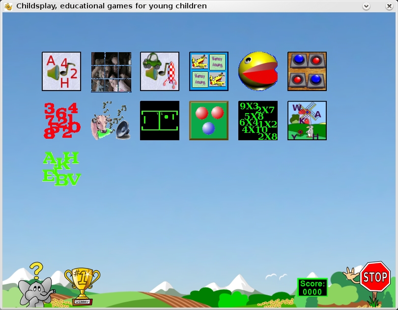 A little side note before I continue—Childsplay runs in full-screen mode by default, which is probably ideal for the little ones. You may, however, want to run it in windowed mode, assuming you need to keep an eye on logs or an IM chat while your child plays (childsplay --window). The game starts with a string of icons representing the various games (Figure 5). Click on any of the icons, and you are off to the races.