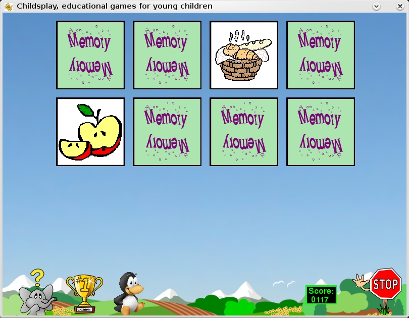 There's a classic memory game where you turn over cards looking for two that are the same (Figure 6). A second version of this game plays sounds rather than showing pictures. The player then needs to remember which button played what sounds and match them up. Another version of the game displays a number of pictures, then plays a sound that your child must match to the picture. There are falling letters that must be typed before they hit the bottom of the screen, letters and numbers that must be clicked as they are spoken, and some simple animal pictures that make the appropriate sounds when clicked. Make sure you download the latest plugins to get an animal flash card set that plays a large number of animal sounds along with pictures and their position in the alphabet. For the budding pool shark, Childsplay also comes with a very simple pool game that starts out with a single ball, and then adds balls as the child becomes familiar with the concept.