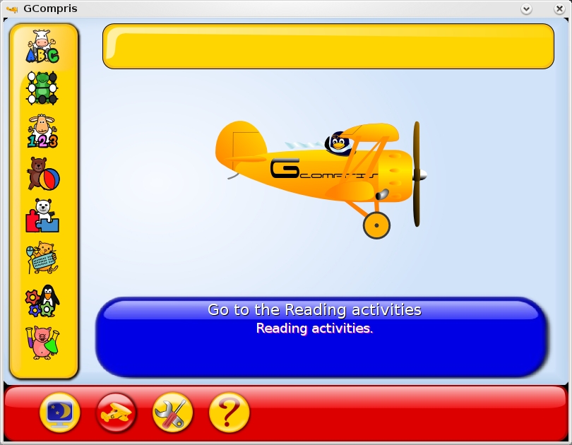Figure 7. GCompris' start screen lets you select activities from different categories, such as reading, numbers or puzzles.
