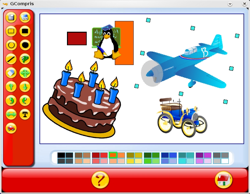 GCompris also has some surprisingly capable little applications hidden beneath the surface, which sometimes mimic adult applications. For instance, there is a word processor, complete with built-in styles, ready to unleash your child's inner author. A built-in instant-messaging application means kids can chat with their friends (but they do have to be on the same network, so a classroom environment works well here). There's even a great little vector drawing application (Figure 9), just like Mommy and Daddy's, except more fun.