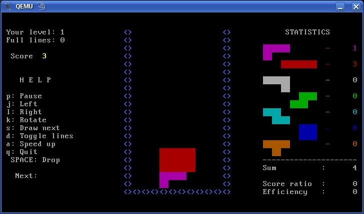 Now, run image in QEMU, and you can play Tetris from the BIOS (Figure 5).