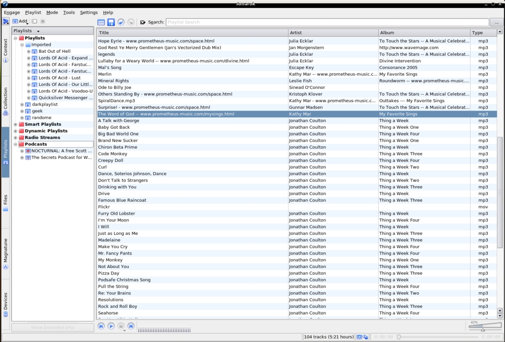 Figure 11. Amarok is the ultimate podcatcher/portable media player/sync manager/music library manager/player.
