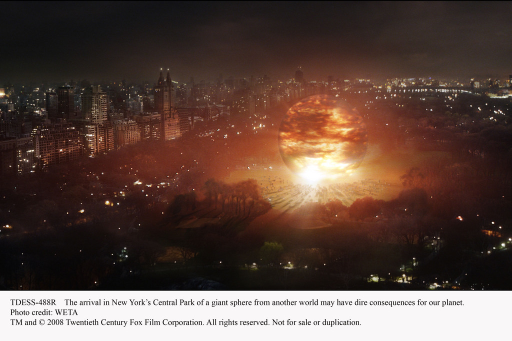 The arrival in New York's Central Park of a giant sphere from another world may have dire consequences for our planet. Photo credit: WETA.