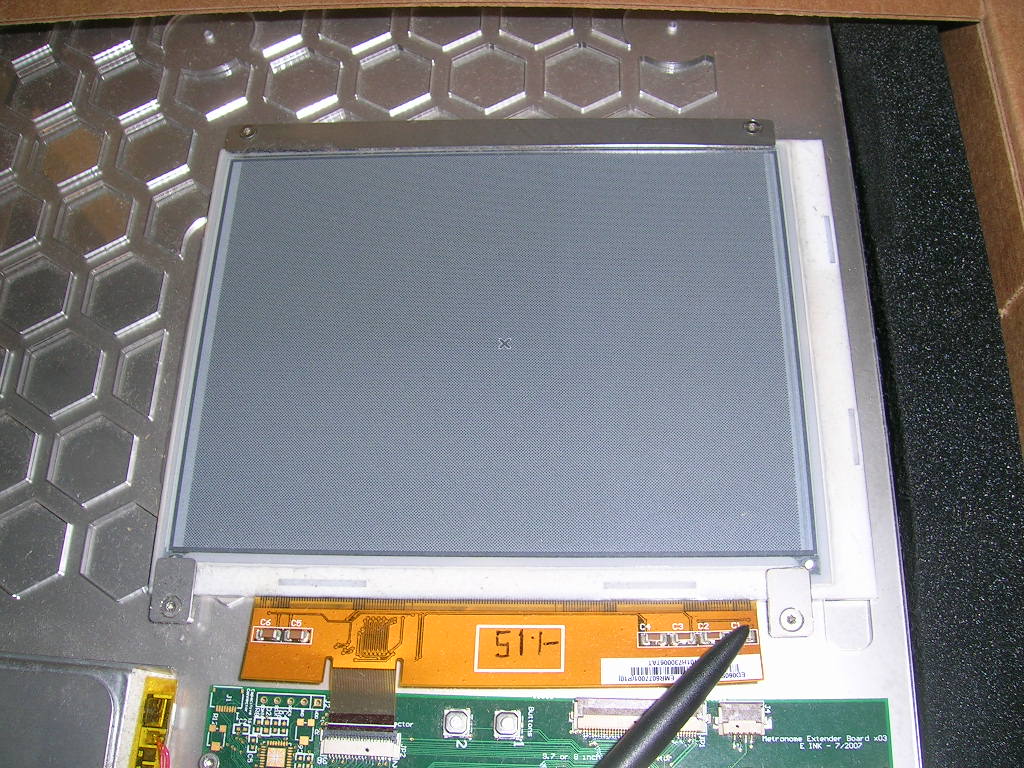 First, let's do a quick review of the hardware infrastructure we're using to better understand the software we need to add. The display shown in Figure 3 is an E-Ink Vizplex display that has a Thin-Film Transistor (TFT) back end. This is connected through the fine pitch (FPC) ribbon cable to the adapter board. This adapter board is there to distribute the correct signals to the display connectors and also to provide some expansion buttons that can be accessed using General-Purpose Input Output (GPIO) from the Gumstix. This adapter board sources its signals from the Metronome controller board, which is the display interface. It carries the Metronome controller, which has an associated Linux framebuffer driver called metronomefb to which X will be talking. The Metronome controller board is connected via another FPC ribbon cable to the Gumstix board. The Gumstix board has the XScale PXA255 CPU and all the associated interfaces, such as Bluetooth, SD card, USB and others. The Lyre mainboard is the carrier for the Gumstix board. This Lyre mainboard has the power block, battery stuff, status LEDs, USB network interface and USB serial interface that allows us to control the Gumstix from a standard PC.