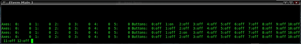 If you compare the lines, you can see that the green button corresponded to button 1, and the red button corresponded to button 2. Because the guitar interfaces directly with Linux like a regular joystick device, that means I can use its buttons with any game that supports joysticks.