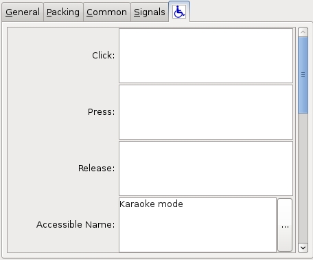 For this reason, such relationships need to be defined explicitly by the application author. If the application's UI was defined via Glade or GtkBuilder, we could easily declare the proper relationships in the Accessibility tab in each label's properties. If our user interface is written pragmatically, we will have to use ATK's API.