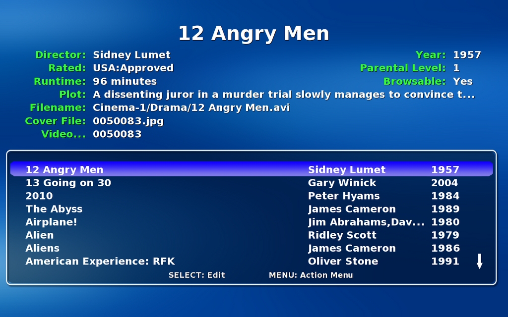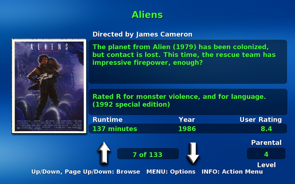 Browse Mode sorts all your videos alphabetically, and although the information it displays is detailed and easy to read, it can take some time to browse a large collection. Use paging keys (by default, this is the Page Down key on a keyboard) to page through the list a little faster.