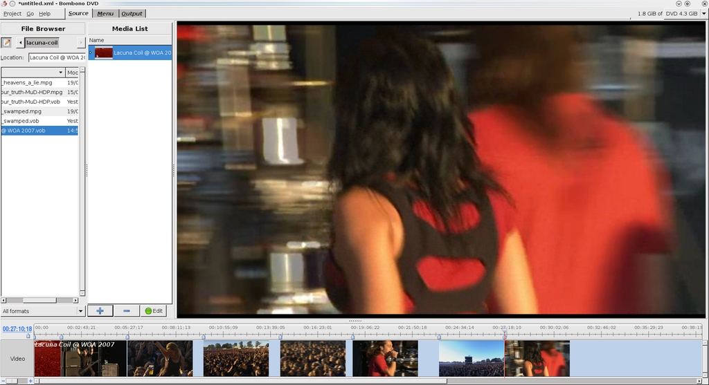 Once you have some .vob files available, start the program, click on the Source tab, and look at the file browser on your left. Locate the files you're going to use, and either drag them across into the Media List pane or click the blue + sign. While we're in the source section, clicking the Edit button when a video is highlighted lets you split the file into chapters using the timeline below (more on that later).