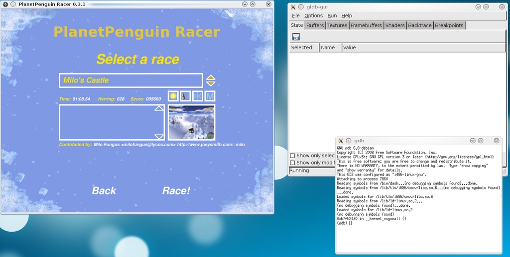 “In addition, there is a debugger (gldb-gui) that lets you set breakpoints and examine backtraces. It also lets you examine OpenGL state, shaders, textures, buffers and so on, and drop into gdb to see what is going wrong.”