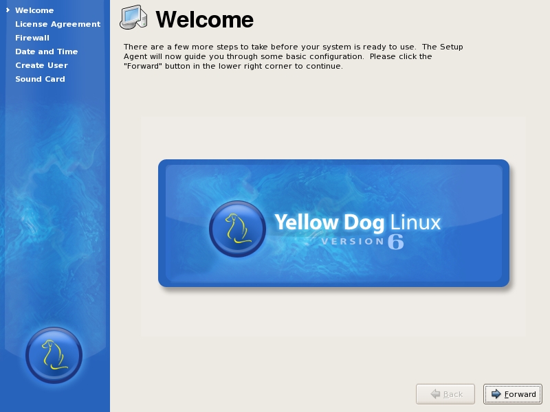 When first booting the PowerStation, you go through the normal Anaconda new-user setup. Unfortunately, this process crashed on me at the very end, forcing me to reboot the computer. It seemed like it was just a fluke, so I didn't worry about it too much, but I think it may have contributed to my Firefox problems (more on that later).
