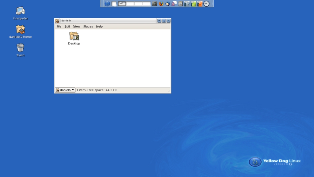 One interesting decision Terra Soft made was to configure the first Enlightenment desktop to run Nautilus full screen for file management purposes. This was a little confusing at first when I tried to change the Enlightenment wallpaper and nothing happened. To change the wallpaper of the first desktop, I had to change the GNOME wallpaper. Wallpaper issues aside, using Nautilus is a smart move, because it is one of the most advanced file managers available. I soon got used to using the first desktop for file management and the rest for running apps. This arrangement actually forced me to become better organized as different tasks were more clearly and cleanly separated. The other three desktops do not have Nautilus running on them, so they behave like regular Enlightenment desktops, animated backgrounds and all.
