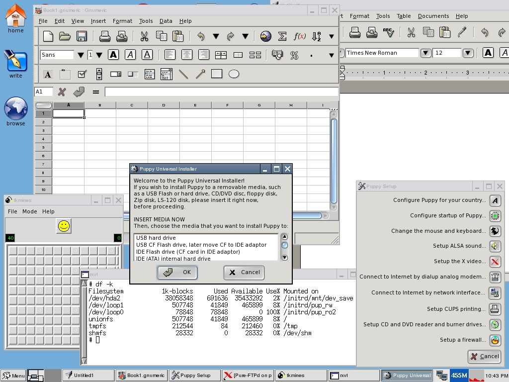 Not bad! And, you don't need to start with the standard core set of applications. Through a process documented under “Puppy Linux Unleashed” (www.puppyos.com/puppy-unleashed.htm), you can create a customized distribution from more than 500 packages designed to run under PL. The PL community puts the total number of available applications at more than 1,000.
