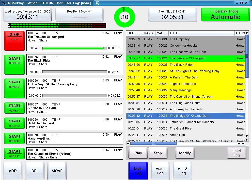 The Rivendell Project rules this domain. Rivendell (Figure 4) provides a complete solution for radio broadcasters (air-wave or network-based) who want to automate all or any part of their operations. The suite is an impressive achievement, with a fully professional set of features “...for the acquisition, management, scheduling and playout of audio content”, according to its Web site. The latest public release is version 1.0, and the project development status is current and ongoing.
