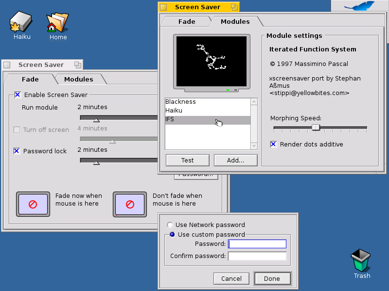 The Haiku Screen Saver Preferences Applet (from www.haiku-os.org)