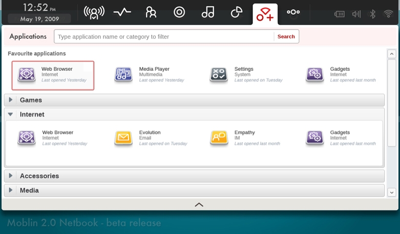 Figure 2. Moblin is designed to work on a variety of handheld devices, but Netbooks are one of the current foci.