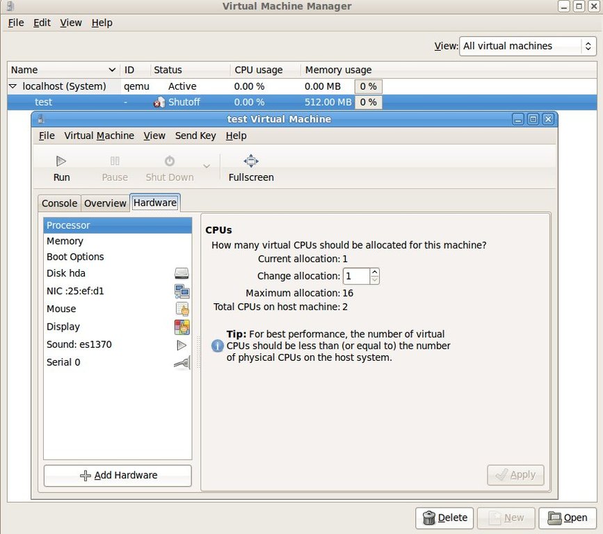 “But wait!” you may exclaim, “Why aren't you evaluating Xen too?” The answer is simple. Xen, although extremely powerful, is more of an enterprise-class virtualization solution and may be overkill for the average Linux user. If you're going to be building a data center or a service that will be exposed to customers on the Internet, that's when you should consider Xen. This is one of the reasons Ubuntu officially supports KVM, rather than Xen, as its open-source virtualization solution, and I follow that reasoning here.