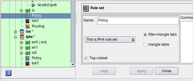 Mixed IPv4/IPv6 rule sets can be especially useful when IPv6 is added to an existing IPv4 network. Because most firewalls and routers require different syntax for IPv6 ACL and rules, you have to implement a second rule set for IPv6, carefully trying to copy existing IPv4 rules to preserve the general structure and meaning of the security policy. Things become even more complicated after that, because every change in the policy should now be reflected in two sets of ACL or firewall rules. Keeping these synchronized quickly can turn into a major task that can increase the probability of human error and network outages significantly. Mixed IPv4+IPv6 rule sets in Firewall Builder help solve this problem, because two iptables scripts are generated automatically from the same set of rules.